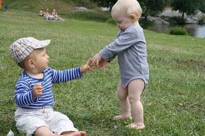Vincent, Michaela och Nils var också vid Söderbysjön. Det var perfekt bäbisbadväder. Molnigt, men varmt. Signe älskar att bada och picknick med banan och Ellas Kitchen är inte heller helt fel. Ännu bättre när man lyckas tigga till sig lite gott bröd. För att inte tala om att man sen kan stå och nakenfisbajsa som en annan kanadagås.